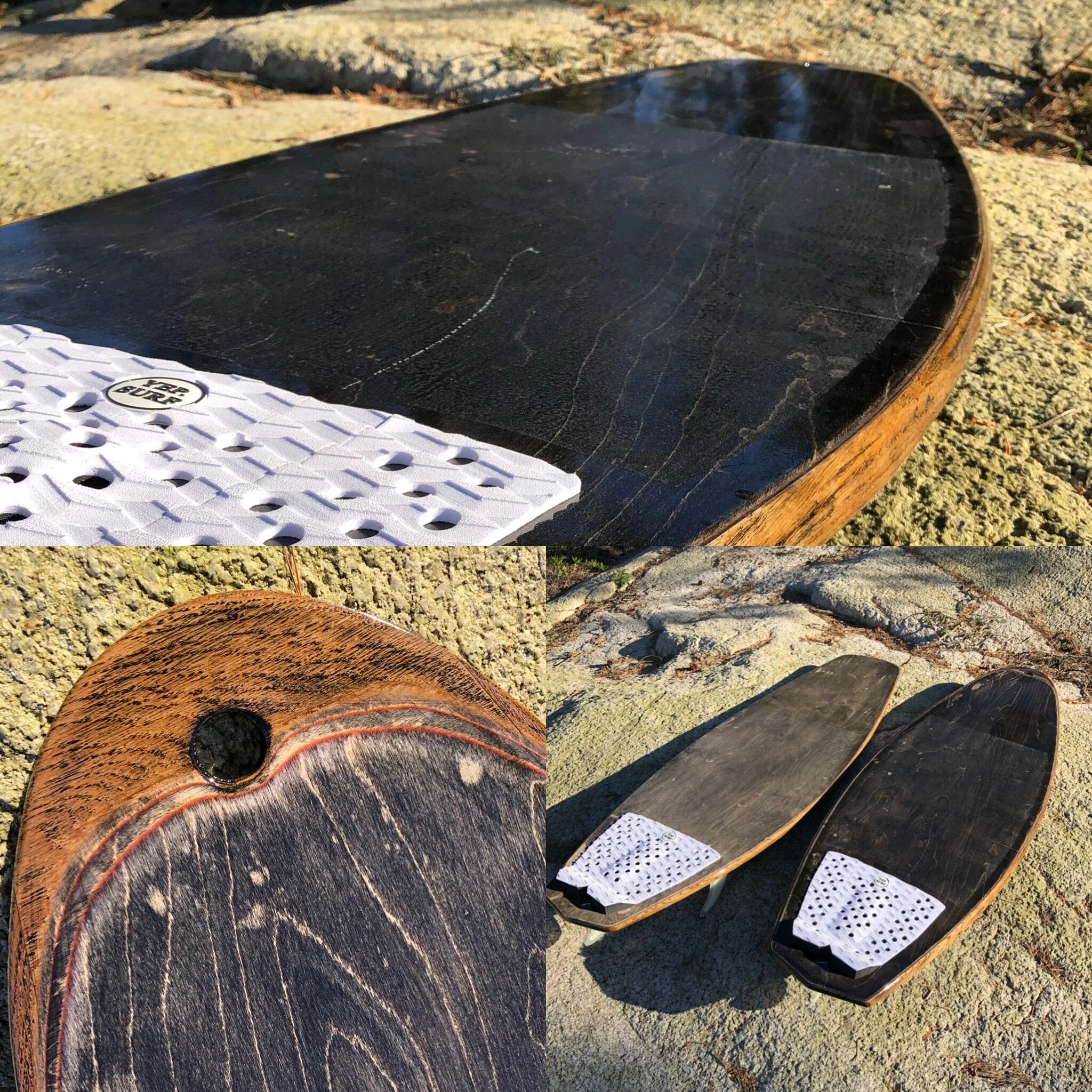 Lightweight surfboards for kitesurfing constructed from sustainable wooden materials.